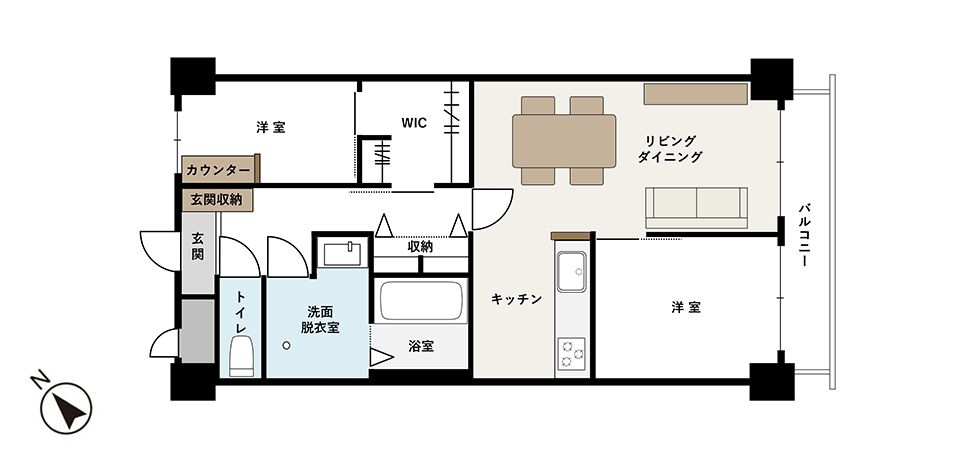 LDK。来客時も快適に過ごせるほか