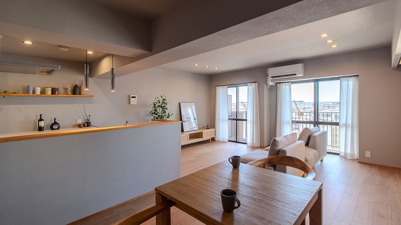 温もりあふれるLDK。自然光が差し込む開放的な空間は、家族の笑顔と快適な毎日を育みます。機能的なキッチンと広々リビングが、心地よい暮らしを演出。