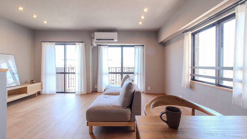 大きな窓から自然光がたっぷり入り、部屋全体が明るいです。