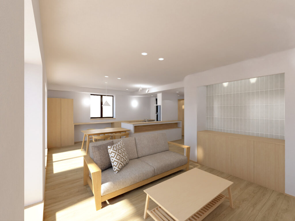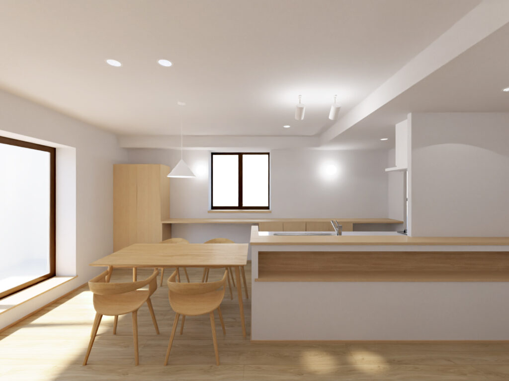 リビング・ダイニング・キッチンそれぞれに 十分な広さを確保。天井も高くとり、LDK全体にゆとりを生み出しました。※イメージパース