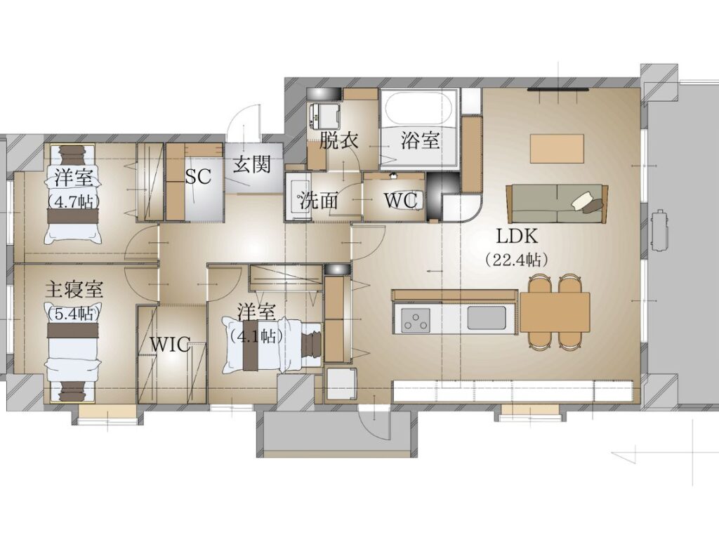 ・22帖のLDKはしっかりくつろげます
